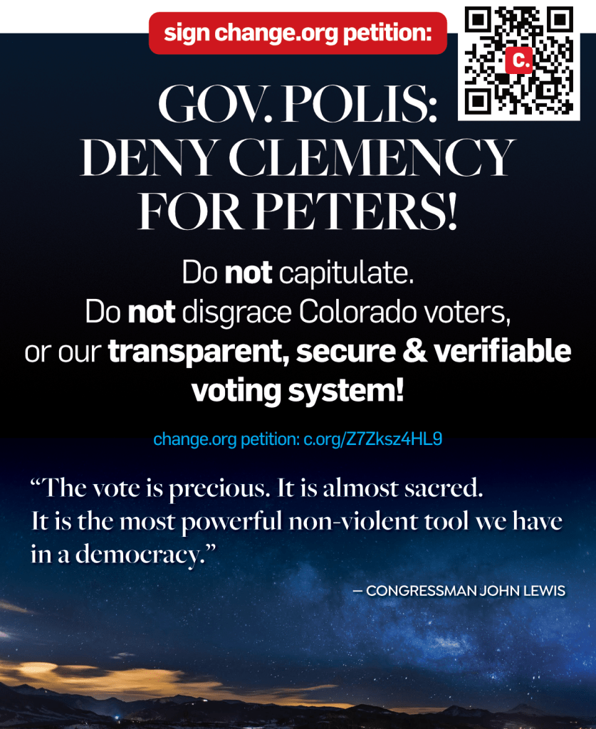 Governor Polis, do the right thing. Do not add a “quid pro quo” to your legacy. Deny clemency for Peters.